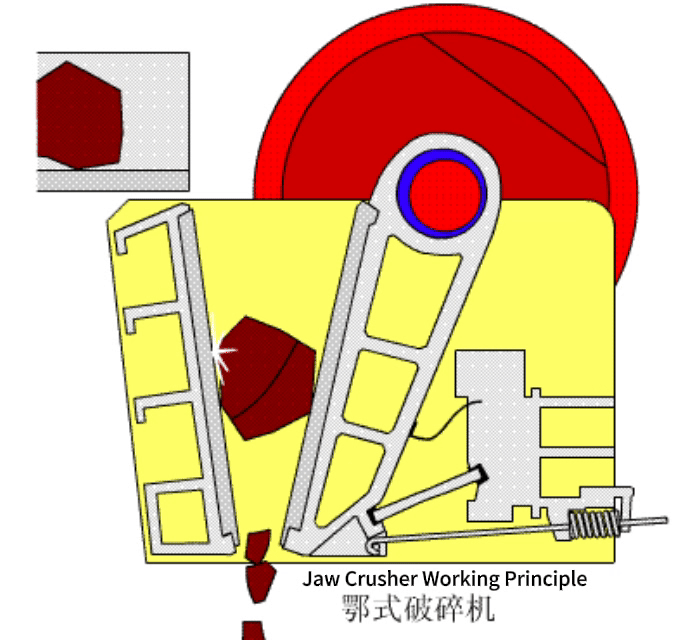 A jaw crusher works by compressing material between a fixed jaw and a moving jaw driven by an eccentric shaft. As the gap narrows, the feed fractures; once it is smaller than the discharge opening, it leaves the chamber from the bottom.